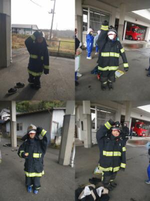 防火服を、全員が着用させていただき、未来の消防士が誕生しました。